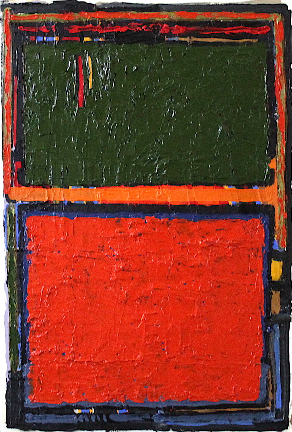 The “rectangle” paintings are in oil paint on paper. They are much the same size as those in my last show. So don’t expect anything nearly the size of Rothko’s work. My paintings will hang perfectly on the walls of your home. Unlike Albers I choose to explore texture alongside colour. The element of a third dimension is evident even though they will be framed behind glass.